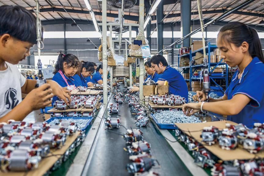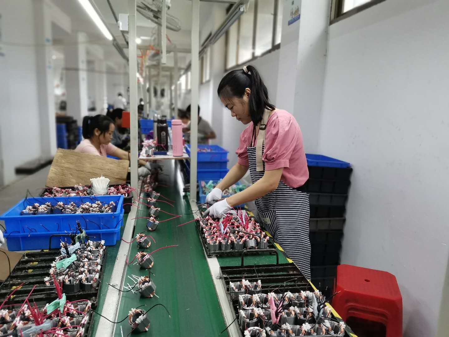 在江华瑶族自治县某公司的车间里,大型设备正高速运转,精准地完成着各种复杂工序。工人们则聚精会神地将电机的定子、转子、轴承等部件一一安装到位,各项流程有条不紊地进行着,确保订单保质保量按时完成。据该企业负责人介绍,上半年产能超额完成,日均产能达到二十几万台电机,下半年可能会达到三十几万台。