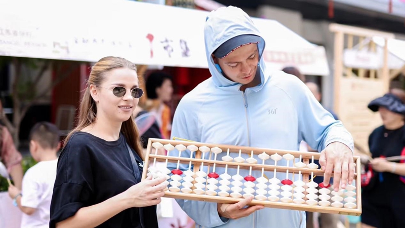 在集市现场,江苏中行还邀请了南京本地民间艺术团体进行现场演绎,在南京白局、金陵琴韵等民俗艺术中融入消费者权益保护内容、金融知识。市集一角开设非遗课堂,非遗传承人现场教授与金融相关的传统技艺,如传统算盘使用、古钱币鉴赏等。来自英国的留学生约翰说:“没想到一个小小的算盘,也能实现计算器的计算功能,不愧是中国人的智慧!”