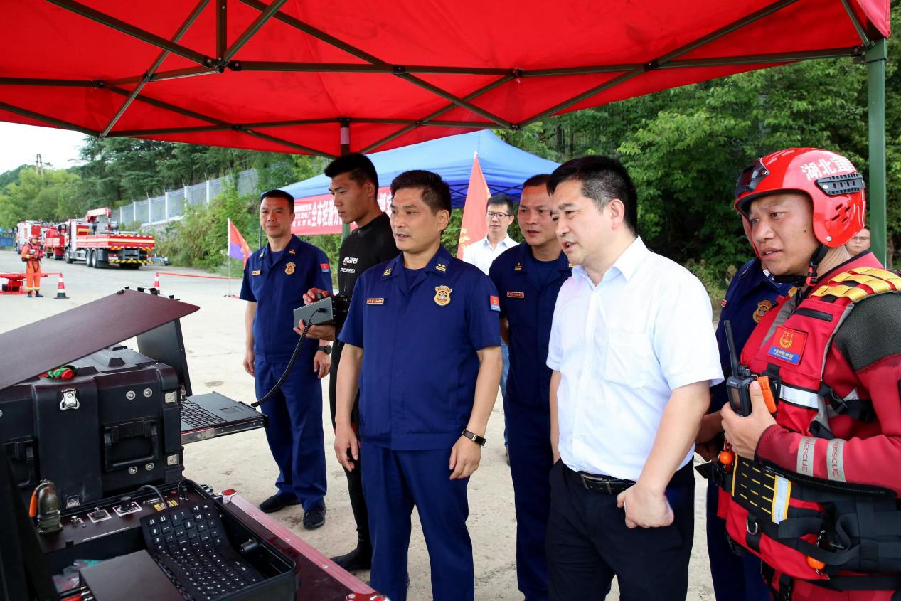 接警后,消防站的队员们迅速集结,携带着潜水装具、电动液压水下破拆工具组、上浮打捞系统以及水下机器人等装备,驱车前往事故现场。