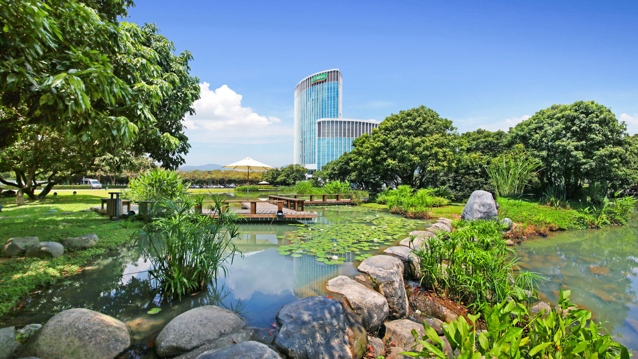 位于木兰溪下游的三棵树莆田园区,碧绿清澈的溪水从园区内潺潺流过。作为首家提出“健康漆”概念的企业,三棵树实现了绿色原材料采购、绿色研发、绿色智造工厂、绿色产品、绿色交付、绿色施工。目前,已有300多款绿色产品获“中国绿色建材产品认证”。
