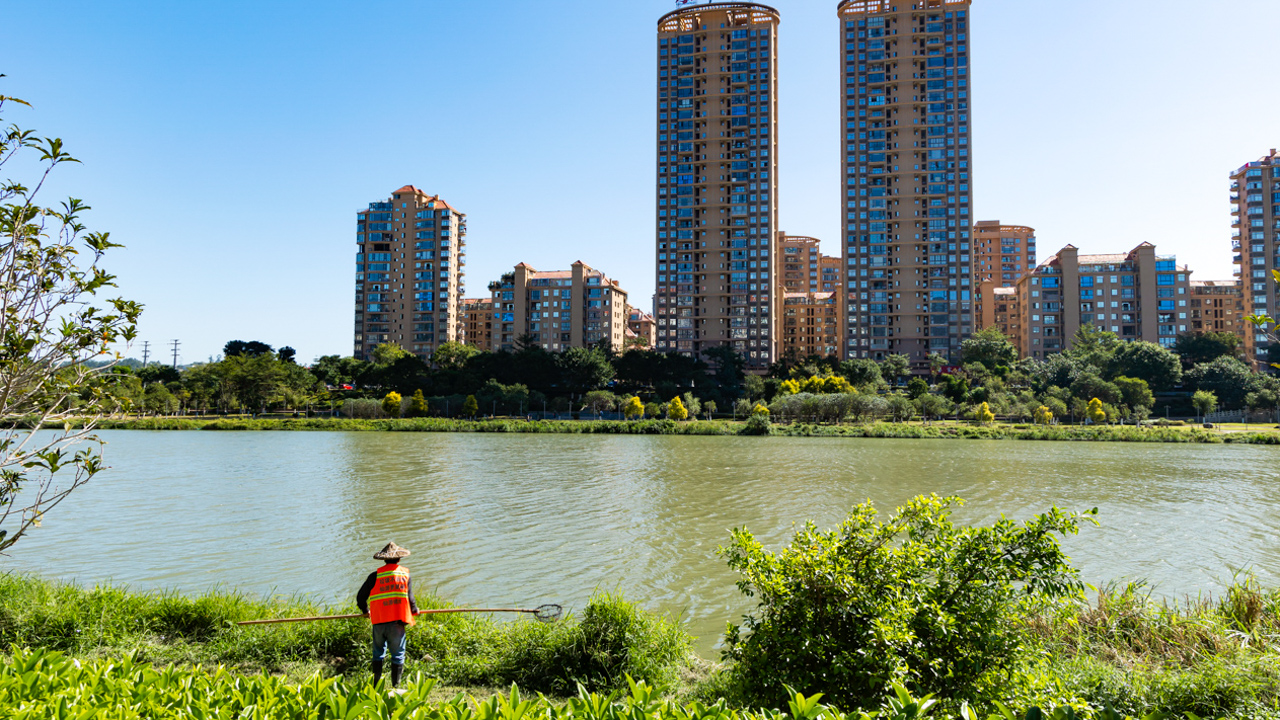 每天早上七点,负责延寿溪河道清理的环卫工人就开始清理河道内及周边的垃圾和杂草。莆田市龙桥城市投资开发有限公司路面主管林黎芹就负责延寿溪部分河道的清洁管理工作,她说:“我们负责的延寿溪河道区域卫生状况良好,周边居民也很爱护河道卫生,我们只要不定时地进行清理就行。”