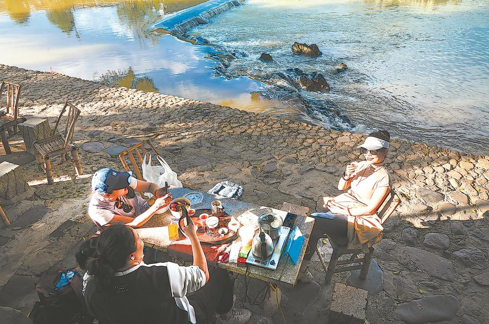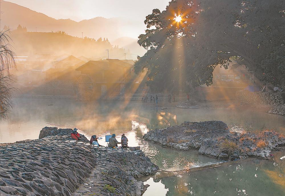 云水谣景区依托品牌效应不断引入知名高校来开展文化交流活动,学生静静坐在溪边、树下写生的身影成了村里随处可见的风景。