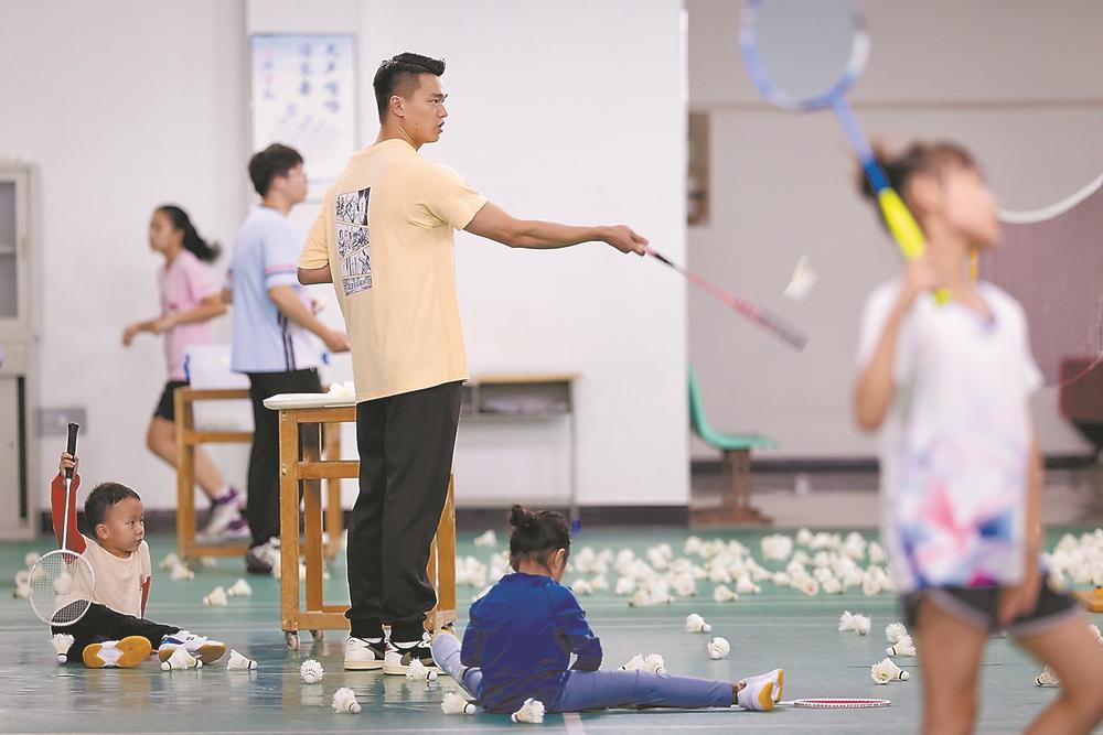课后,不同年龄段的孩子在少体校进行羽毛球训练。林熙 摄