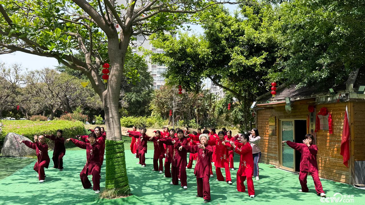 在秀屿区智慧体育公园,春日暖阳中,伴着舒缓的音乐,太极拳爱好者们身姿稳健,一招一式如行云流水。