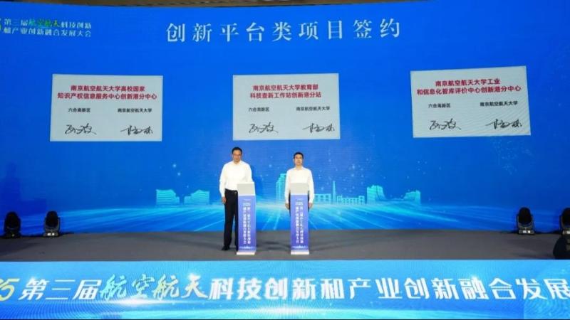 会上,对六合区航空航天产业发展环境进行重点推介,发布南航国际创新港科研成果。再制造技术国家级重点实验室进行合作共建推介。非定常空气动力学与流动控制工信部重点实验室、轻型通用航空飞行器技术江苏高校协同创新中心、进排气技术教育部重点实验室等9个项目入驻揭牌。南航国家知识产权信息服务中心创新港分中心、教育部科技查新工作站创新港分站等3个创新平台类项目,南京置柏航空航天产业投资基金、空地数智交通产业投资一期基金等2个基金类项目,零重空间通讯终端、盛航博测发动机检测项目等12个科创人才类及产业类项目集中签约。