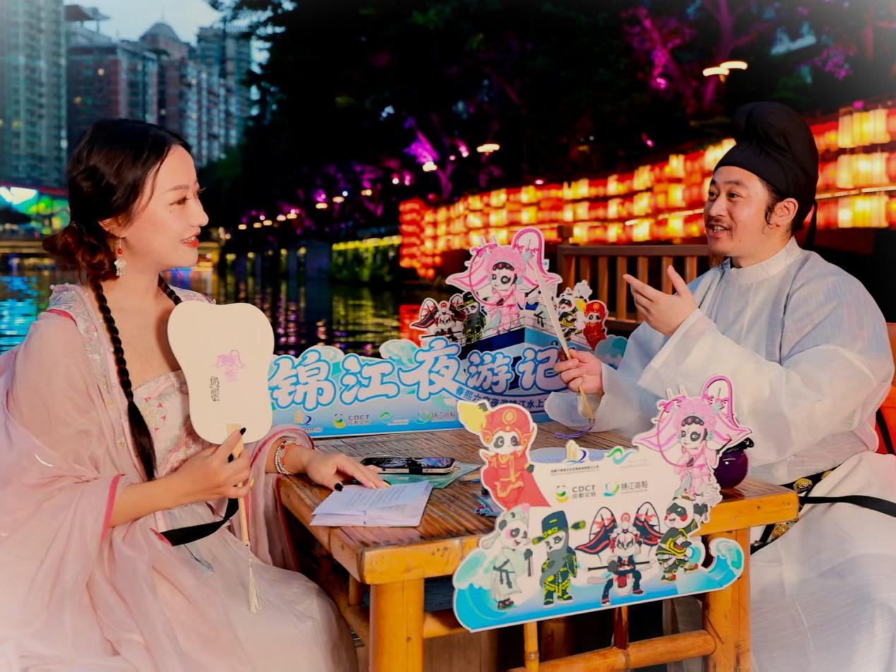 这场“春熙六宝 I AM HERE 水上直播间‘浪漫’首秀”,是成都市锦江区将水上直播间搬上“夜游锦江”游船的最新尝试,也是锦江区发力“首发经济”、探索消费新场景的生动缩影。