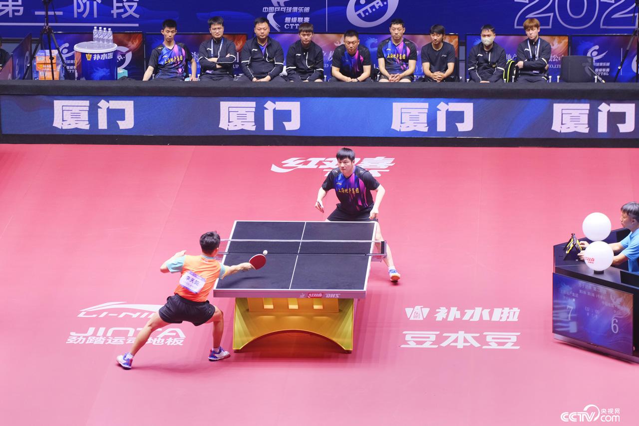 上海地产集团队樊振东对阵中超电缆·福建安井李天阳 陈玮炜 摄