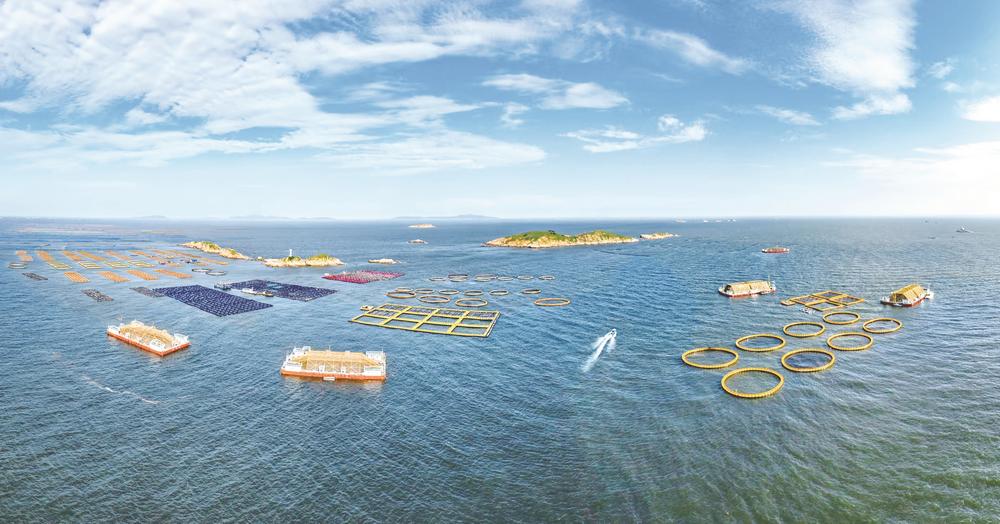 连江定海湾分布着多台深远海养殖装备。(连江融媒体中心供图)