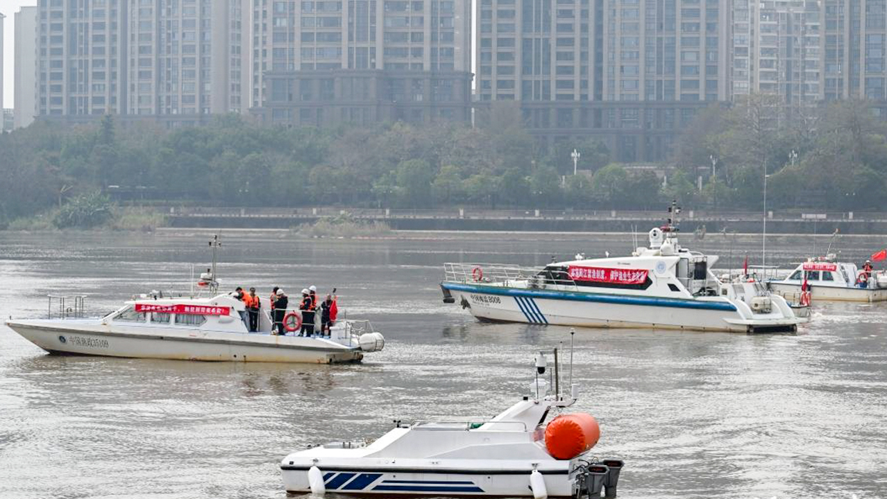 2025年闽江禁渔执法行动启动仪式上,执法船艇和无人艇在闽江巡查。池远 摄
