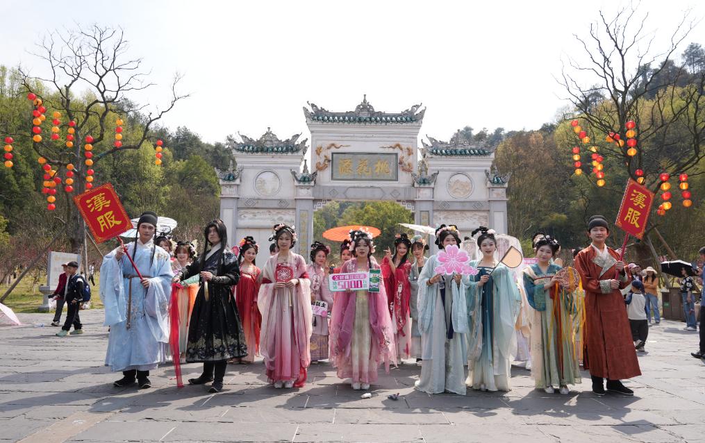 今年3月,金健米业国风巡游大赏在湖南省常德市桃花源景区举行。活动现场,桃花源景区内设置多处沉浸式文化体验空间。美食与国风结合,带领游客感受别样的“桃源味道”,“美食品鉴区”新米炊香,“春日梦想征集墙”让游客写满对美好生活的期许。汉服巡游队伍穿梭桃林间,通过诗词飞花令等与游客趣味互动。