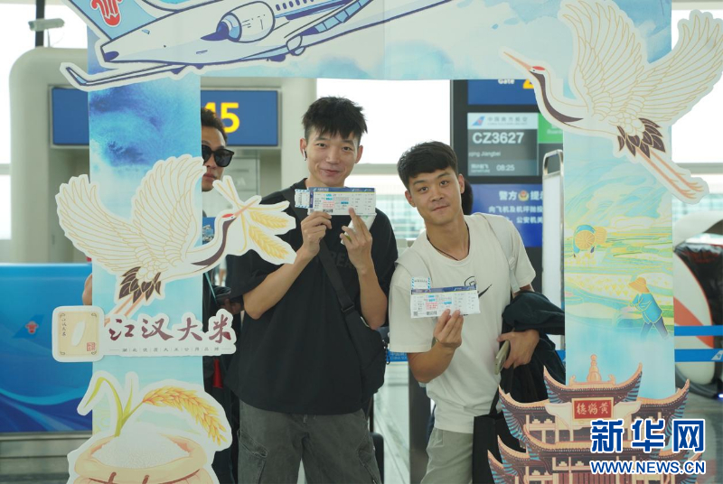 新华网武汉9月23日电(陈周璇)9月23日是中国农民丰收节。当天,两架装载着“湖北心意”旅客礼品袋的丰收节主题航班,从武汉天河机场启航,分别飞往重庆、广州两地。本次活动将湖北省域公用品牌“江汉大米”与现代化出行方式结合,实现农业品牌航空场景的跨界合作,为提升湖北区域品牌影响力开辟“空中新赛道”。
