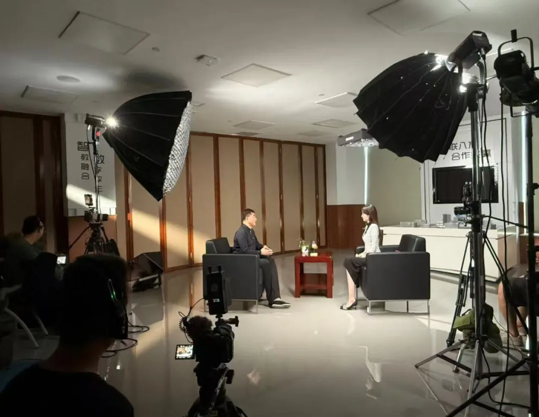 主持人李策与葛均波院士在复旦大学附属中山医院的拍摄现场