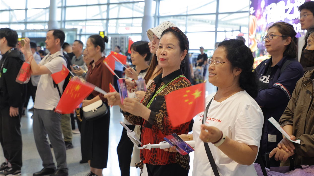 当《歌唱祖国》的熟悉旋律响起,现场氛围迎来高潮。候机旅客与机场工作人员自发加入合唱,“歌唱我们亲爱的祖国,从今走向繁荣富强”的歌声回荡在大厅,五星红旗在人群中轻轻摇曳,汇成一片象征家国情怀的红色海洋。“能在机场遇到这样高水准的音乐会,既让孩子在旅途中接受了生动的爱国主义教育,也真切感受到湖南的文化温度。”带着孩子候机的李女士感慨道。