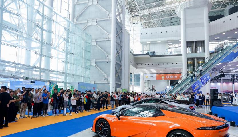 开幕当天,芒果车展的超跑区域前,造型炫酷的跑车一字排开,金属车身在灯光下熠熠生辉,吸引了大量市民围观,现场人气爆棚。