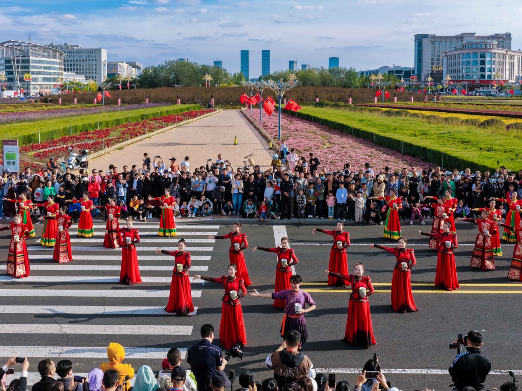 在“暖城遗彩”非遗民俗展演中,英歌舞、南狮、象帽舞、麒麟舞、高跷、少林功夫、云南阿细跳月、滚山珠、安塞腰鼓、新疆十二木卡姆、藏戏等16支来自全国各地的非遗演出团体与鄂尔多斯“乃日”、顶碗舞等当地非遗同台表演,游客沉浸式感受艺术的文化魅力。