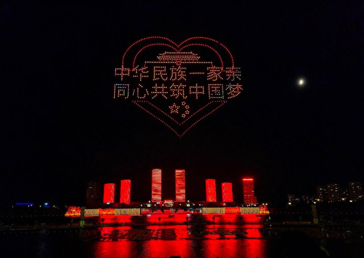 视觉盛宴与沉浸式体验为假期增添了精彩。在康巴什区的乌兰木伦湖畔,无数游客到这里打卡。夜幕降临,“璀璨烟花+千架无人机+灵动喷泉”准时登场,绚烂的烟花在湖面上空绽放,千架无人机组成“中华民族一家亲,同心共筑中国梦”等图案划破夜空,配合着随音乐起伏的喷泉,光影与水花交织成梦幻画面。此情此景引来现场游客的欢呼。