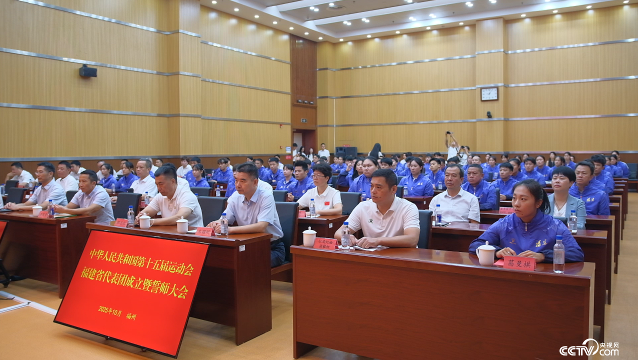 央视网消息 10月11日,第十五届全国运动会福建省代表团成立暨誓师大会在福州举行。此次大会旨在全面动员部署福建省代表团冲刺阶段的备战参赛工作,为出征粤港澳全运会鼓舞士气、凝聚力量。福建省副省长、第十五届全国运动会福建省代表团团长李兴湖出席大会并授旗,参加决赛阶段的运动员、教练员代表齐聚一堂,共同吹响冲刺粤港澳全运会的集结号。
