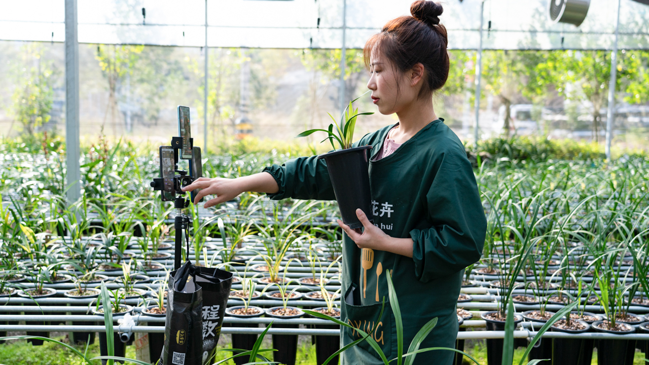 “家人们看过来,这是连城特有的寒兰品种,叶片修长、花香浓郁。”在朋口镇兰花博览园的直播间里,主播小李正对着镜头热情推介。小李是当地返乡青年,去年加入兰花电商团队后,不仅自己月收入超5000元,还带动周边农户的农特产品“触网销售”。