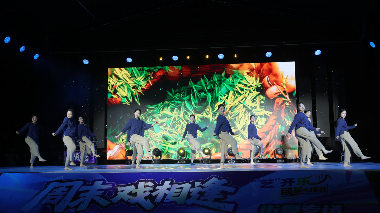 宁德市梧桐树艺术团街舞队展示了畲族姑娘采茶的春日画卷