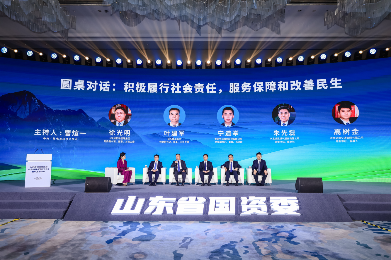 圆桌对话环节,山东机场、山东重工、鲁商生活服务股份有限公司、水发派思燃气股份有限公司、济南轨道交通集团等五家国有企业,围绕保障群众出行需求、吸纳高校毕业生就业、构建便民生活服务圈等主题,畅谈如何以国企之“实”托举民生之“暖”。