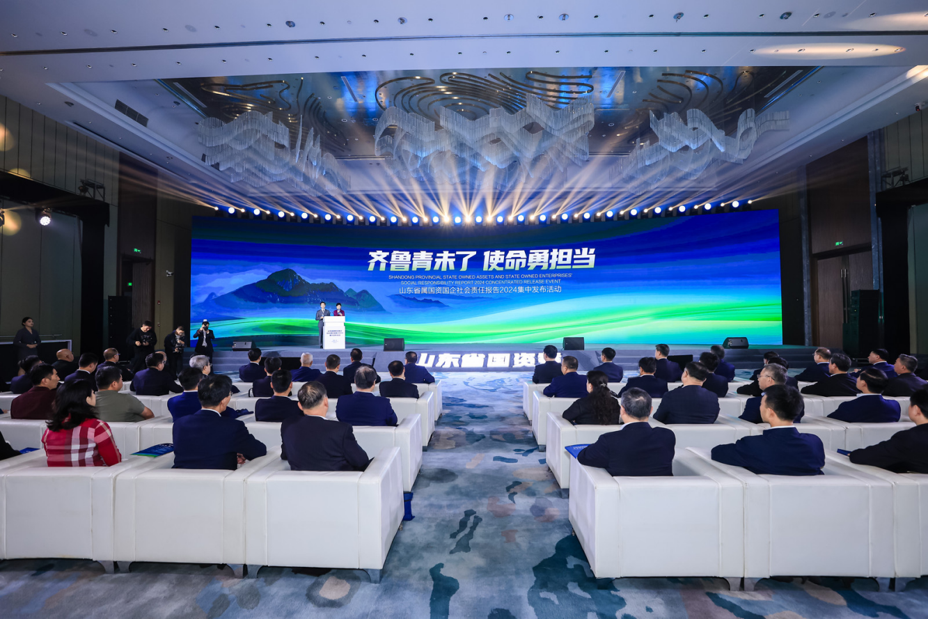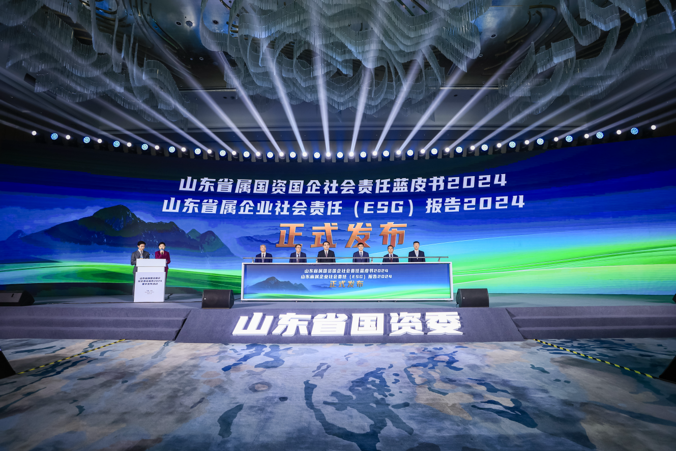 活动现场,集中发布了山东省属国资国企社会责任蓝皮书(2024)、30户省属企业社会责任(ESG)报告。多年来,山东省国资委持续推动社会责任理念融入企业战略,自2020年率先发布省级国资国企社会责任报告以来,已连续5年实现省属企业社会责任报告全覆盖。《蓝皮书》显示,2024年,山东近半数省属企业建立了社会责任(ESG)领导机构,90.63%的省属企业已确立社会责任(ESG)主管部门,81.25%的省属企业已明确提出社会责任(ESG)工作要求;51.52%的省属企业实现社会责任报告向ESG报告转型,较2023年提升45.46个百分点。