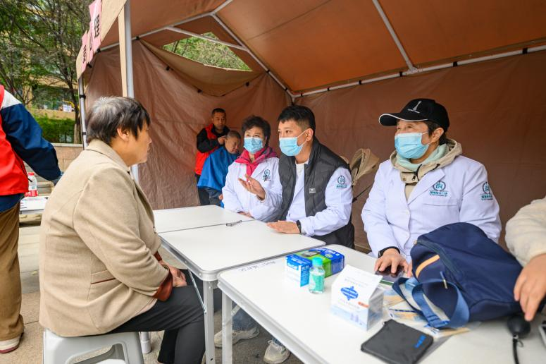 清晨的天霖园社区广场上,AI便民乐享站的各个服务点位前已经有序排起队伍。义诊区的医生们耐心为居民测量血压、提供健康咨询;理发师手中的剪刀飞舞,为老人们理发。