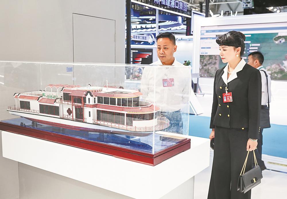 作为“21世纪海上丝绸之路”核心区的福建,海洋经济发展不断取得新成效。福州、厦门全国海洋经济发展示范区领先发展,两市海洋生产总值约占全省一半,海洋经济增加值、海洋科技贡献率等关键指标稳居全国前列;福建率先破题零碳智慧岛建设,推动打造海岛链与海洋能源链、创新链、产业链、生活链“五链”深度融合的零碳智慧岛屿发展福建模式;全国最大南极磷虾捕捞加工船首航南极;全球最大26兆瓦级海上风电机组下线;全球首个漂浮式“风光渔”融合平台“开渔”;海洋碳汇交易占全国市场份额一半以上;深远海养殖总体规模位居全国第一……福建在展馆中设置海洋装备、电动船舶、海上风电、深海养殖四大展区,汇聚70多家企业的顶尖成果——7500车LNG双燃料汽车滚装船,技术性能世界领先;113600吨油化船结合双燃料动力与风帆助推技术,节能减排与经济性突出;全国首艘在海上运营的纯电动推进旅游客船“屿见77”,投用后全年约可减少燃油消耗250吨,二氧化碳减排超400吨……大会现场对接签约项目172项,总投资超2000亿元,在展现福建海洋装备领域的强大实力和发展潜力的同时,也为全球航海装备产业的协同创新、经贸对接、成果转化提供了新的机遇。
