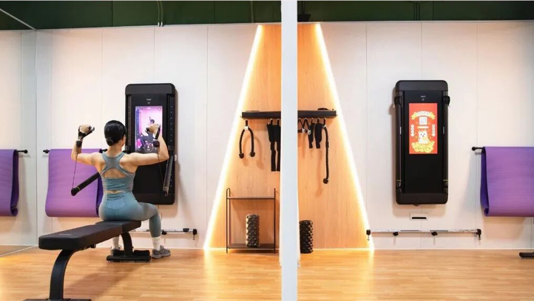 居民正在健康中心内根据“AI教练”指导进行锻炼。