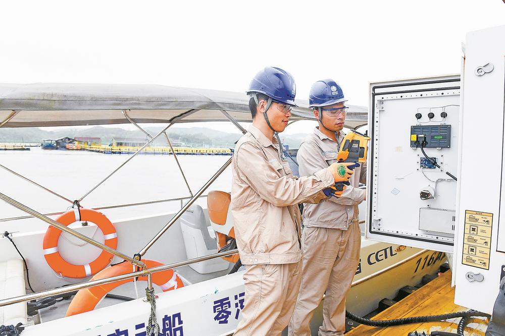 国网员工正在检修宁德沿海电动船舶快充设备。受访者供图