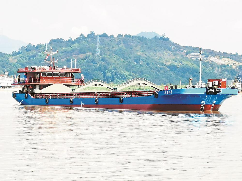 位于闽江的58米内河集散两用增程式电动货船“武夷2号” 记者 赖昊拓 摄