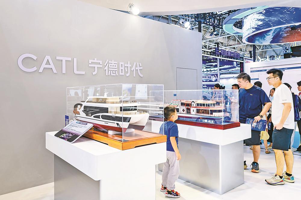 2025第三届中国海洋装备博览会上,宁德时代展出多款电动船舶模型。记者 施辰静 摄