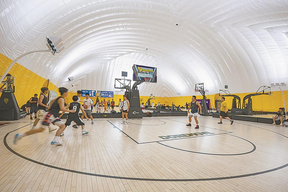 9月5日,福州万象九宜城顶楼的气膜篮球馆,因其清凉的室内环境,成为许多市民应对炎热天气的运动选择。陈天博 摄