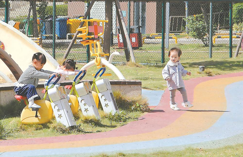 10月29日,孩子在泉州市鲤城区浮桥街道的智慧体育公园运动嬉戏。这里拥有足球场、篮球场、网球场、轮滑场、乒乓球场、智能跑道、智能健身驿站等丰富的体育设施,已成为市民热衷的运动打卡点。庄钊滢 摄