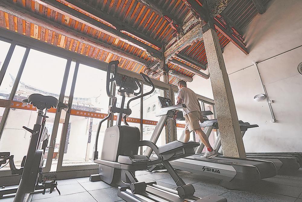 厦门市海沧区古建筑欧阳家庙经改造成为体育智慧健身房,在最大程度保留古庙原貌的同时,将智能健身设备融入其中,打造兼具传统文化氛围和现代科技体验的健身空间。图为10月27日,市民在古庙健身房内运动。林梓健 摄
