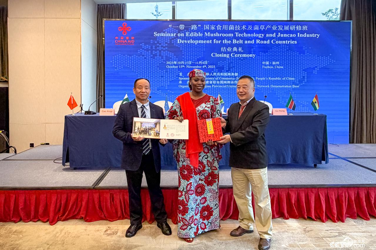 央视网消息 11月4日,由商务部主办,福建省联合国南南合作网示范基地(以下简称“南南基地”)承办的“一带一路”国家食用菌技术及菌草产业发展研修班结业典礼在福州举行。