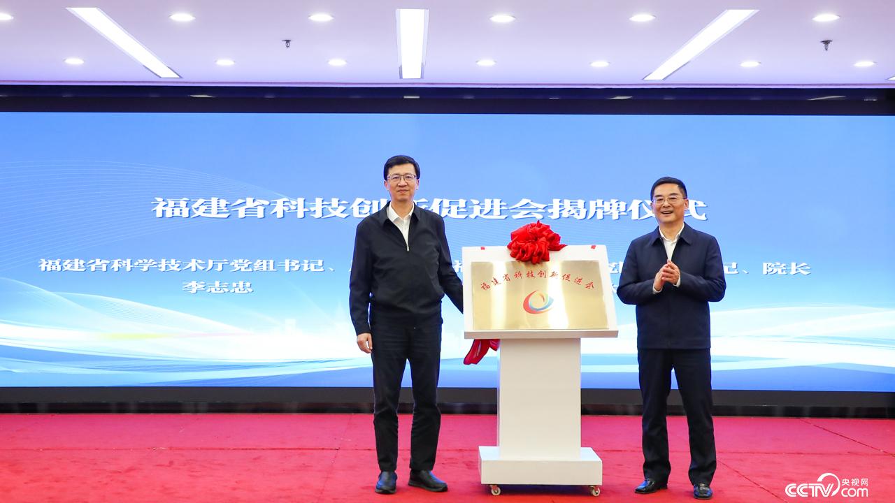 省科技厅厅长李志忠与省创新研究院院长林岿然共同为福建省科技创新促进会揭牌 郑育红 摄