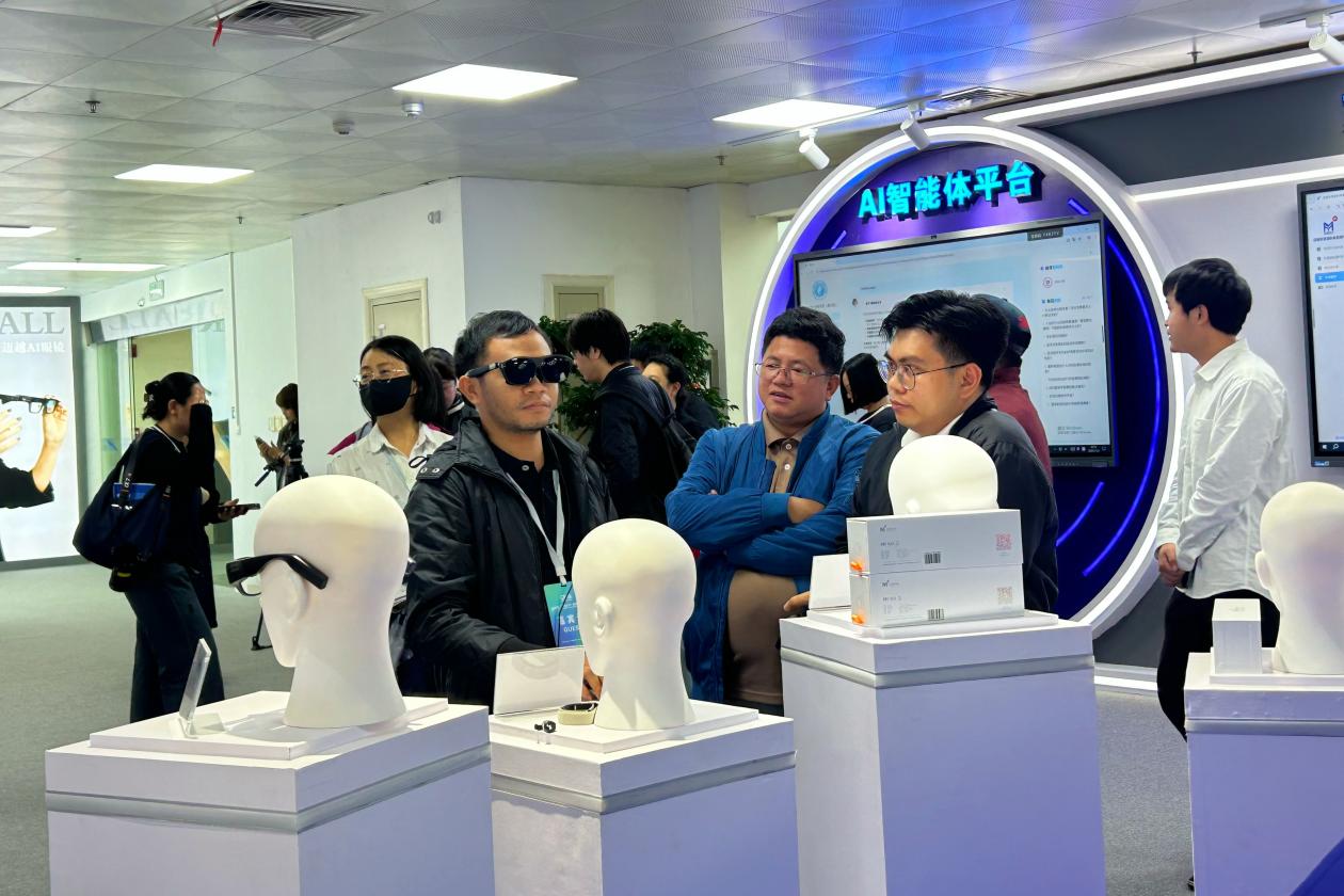 展厅内,在第22届中国—东盟博览会上火爆“出圈”的AI翻译提词眼镜,以支持数十种语言实时互译等功能,吸引参观媒体记者们纷纷试戴。