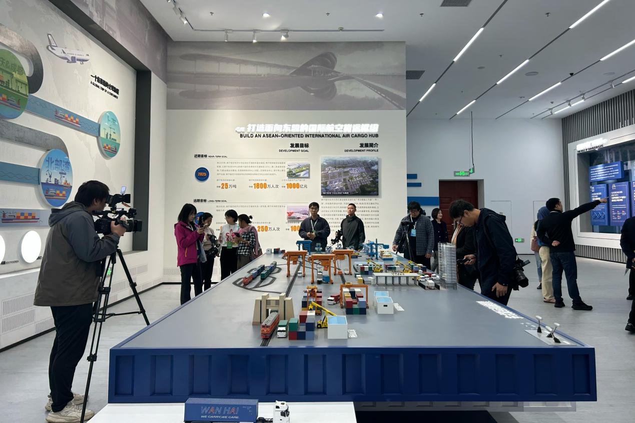 采访团成员走进南宁国际铁路港西部陆海新通道展厅(黄月芬/摄)