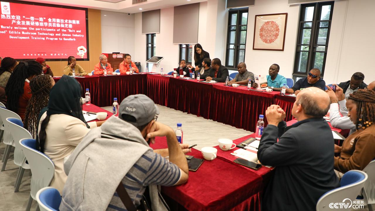 央视网消息 近日,“一带一路”国家食用菌技术及菌草产业发展研修班学员走进南平市浦城县,实地探寻灵芝产业高质量发展的实践路径。