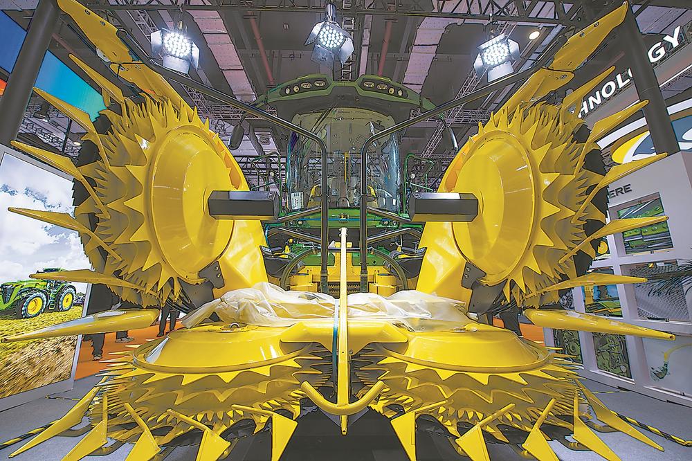 11月6日在第八届进博会技术装备展区拍摄的自走式青贮收获机 新华社发
