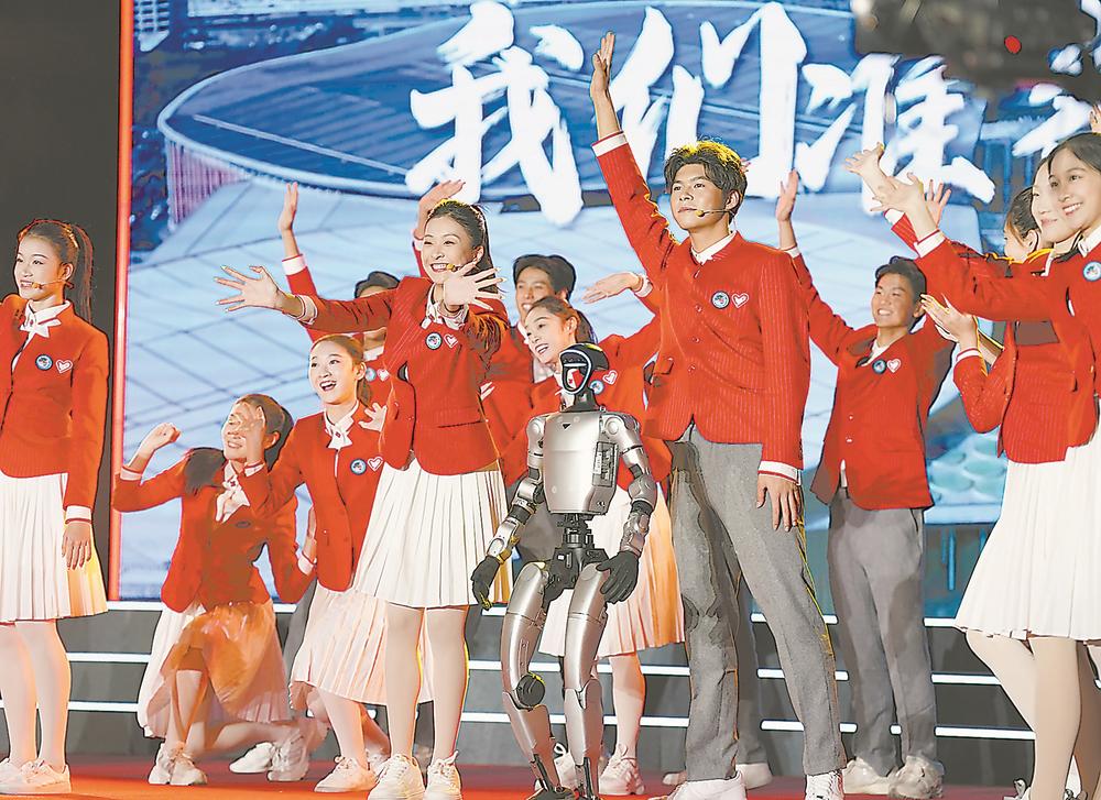 10月29日在第八届进博会志愿者上岗宣誓仪式现场拍摄的舞蹈表演 新华社发