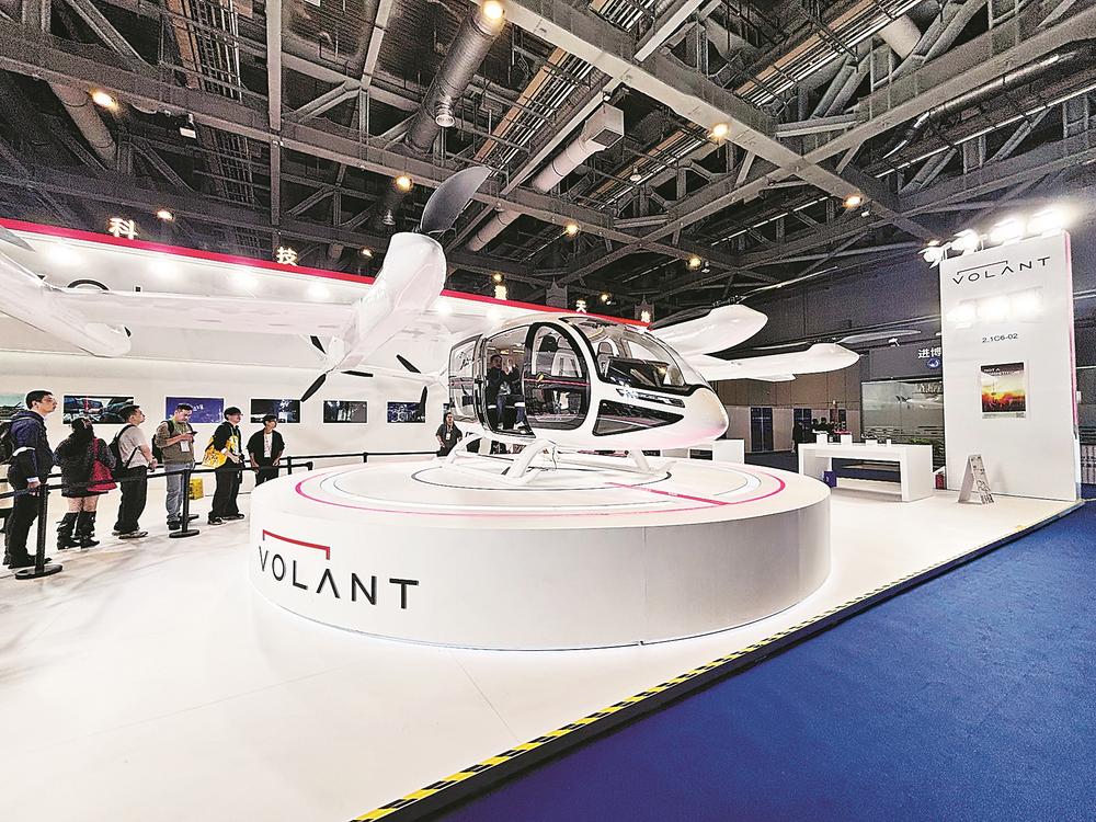 参观者在第八届进博会展区排队试乘沃兰特展出的天行Skylar飞机。 福建日报记者 尤方明 摄
