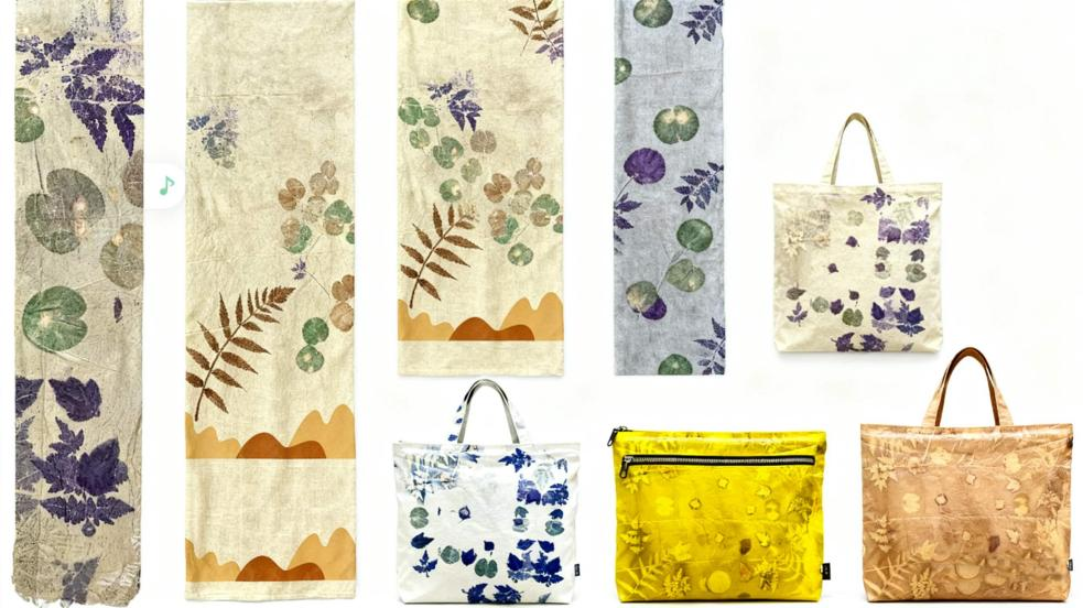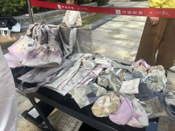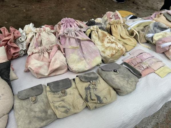 掌握核心技术后,团队迅速转向产品化应用。学生们主导设计,将染制的面料制作成丝巾、布袋、服饰等系列产品,并带着这些充满自然故事的作品走进了社区义卖和本地创意市集。