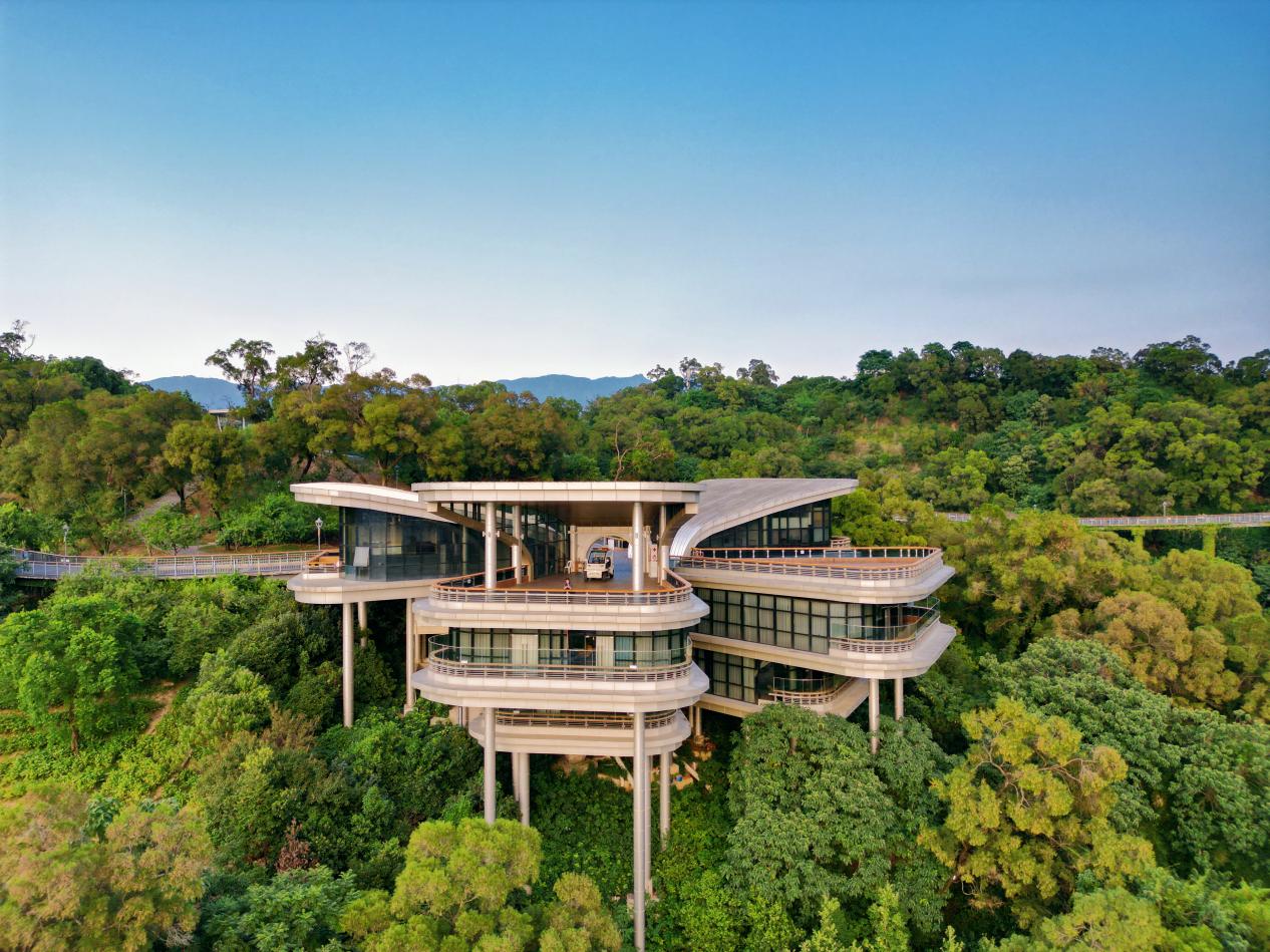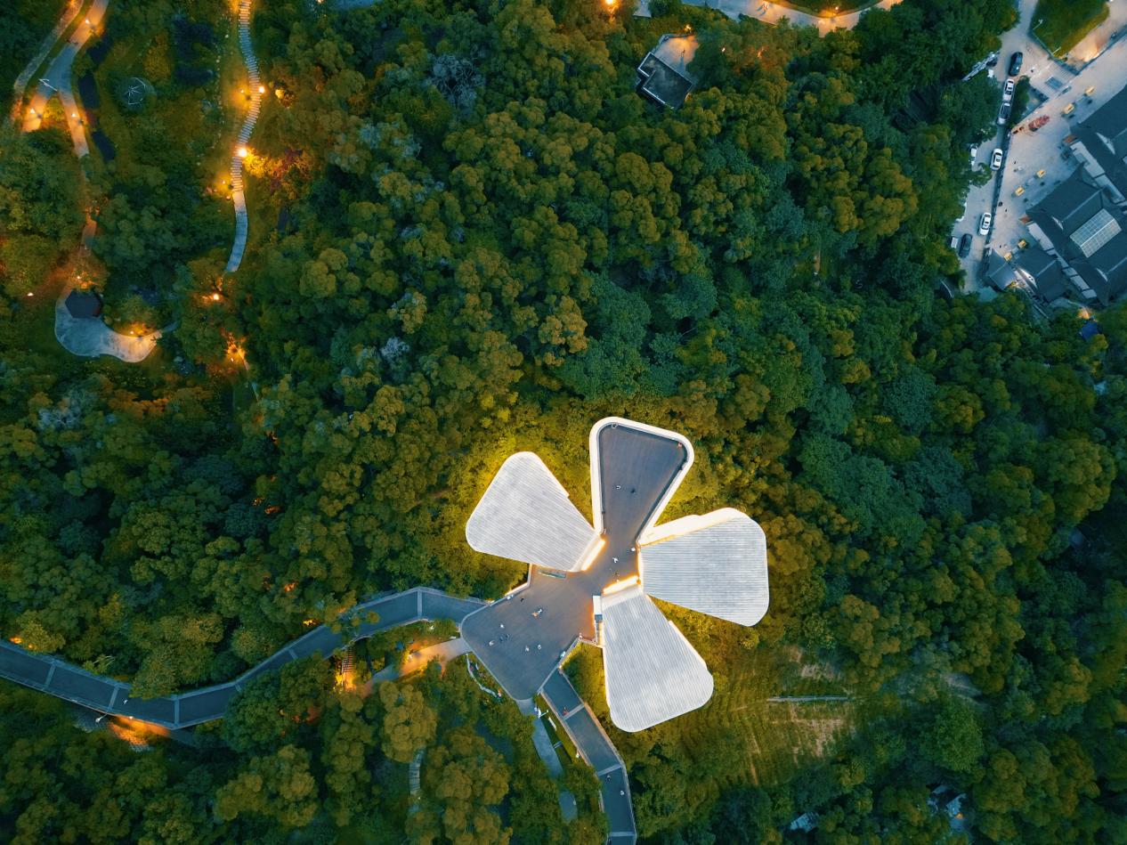 俯瞰茉莉花厅清新书苑,宛如一朵“茉莉花”绽放在公园的森林中。清新书苑供图
