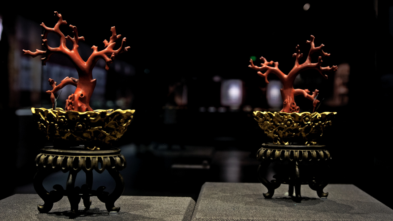 《洞见之奇——教我如何不懂她?》篇章展出清末民初陈兴壁制木胎红珊瑚盆景。 陈玮炜 摄
