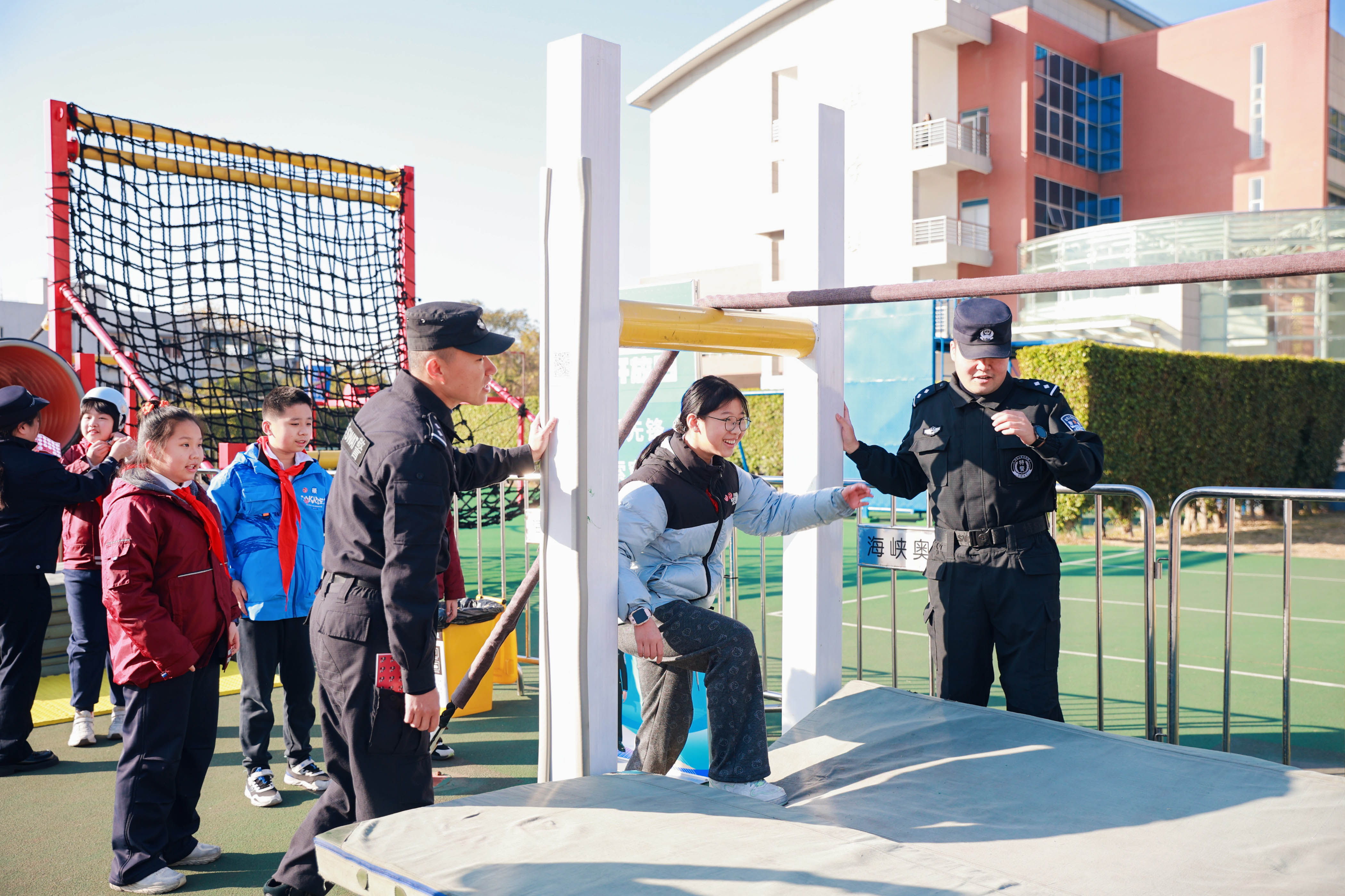 亲子互动挑战赛环节,穿越火线、管道地战、铁索穿越等十大趣味项目同步开启。家长与孩子同心协力、默契配合,在充满挑战的项目中奋勇争先,活动现场欢声笑语此起彼伏,一个个趣味项目成为增进亲子感情、拉近警民距离的温馨纽带。