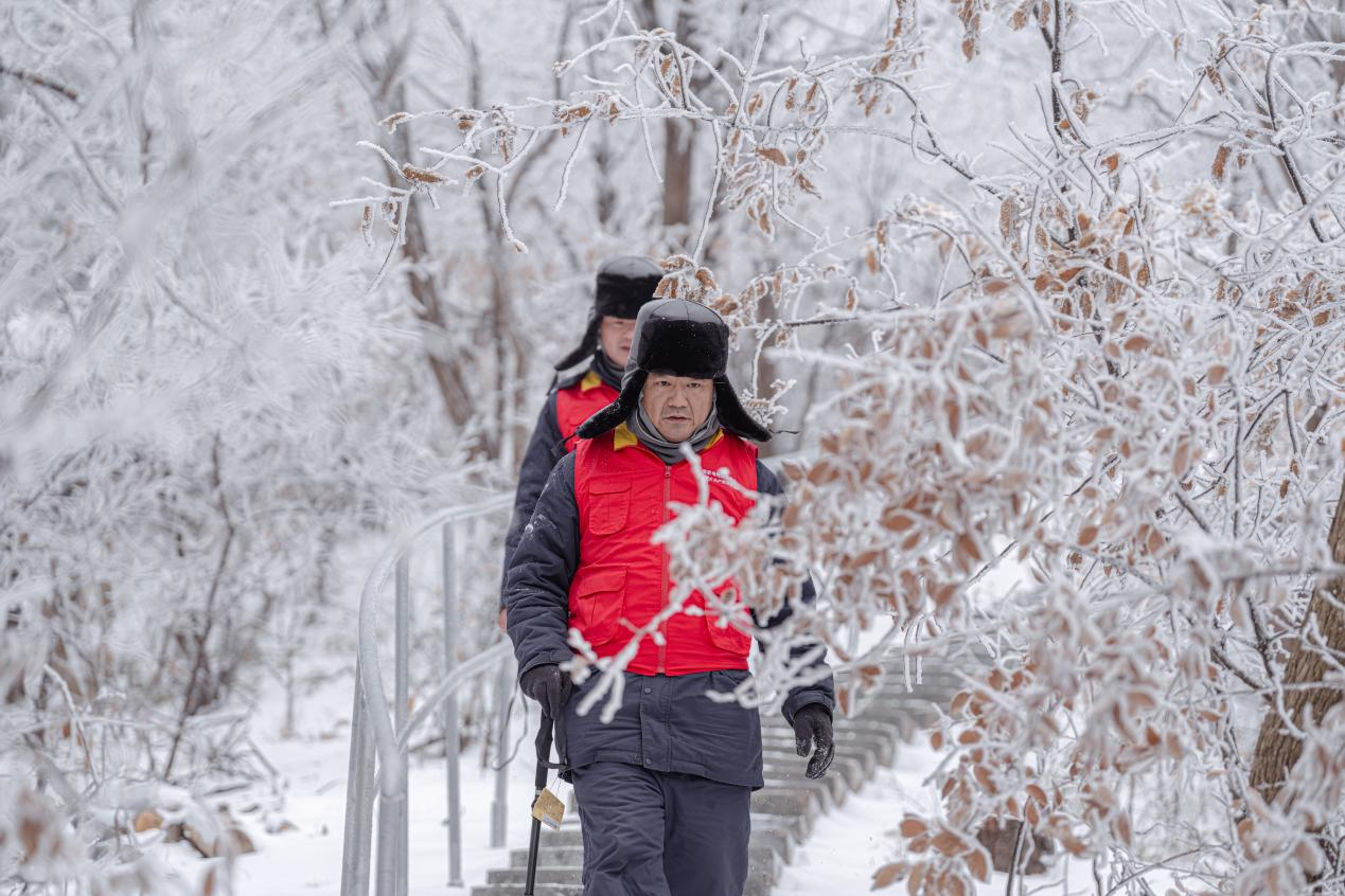 大雪纷飞了一整夜,将山间的路全部覆盖。尽管穿着冰爪、撑着登山杖,柴进和王刚每走一步都小心翼翼,对塔材、线路可能出现的发热等重要缺陷进行查验,确认完全没有问题后,才算完成这一次对线路的特巡特维任务。