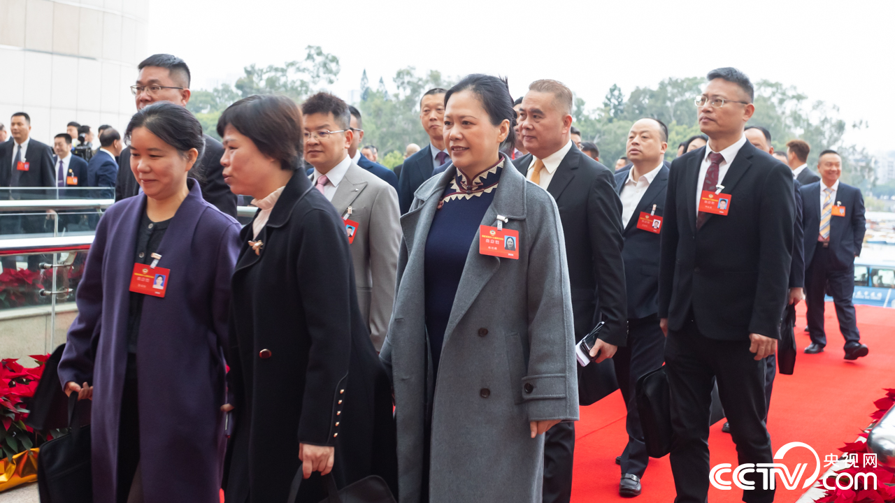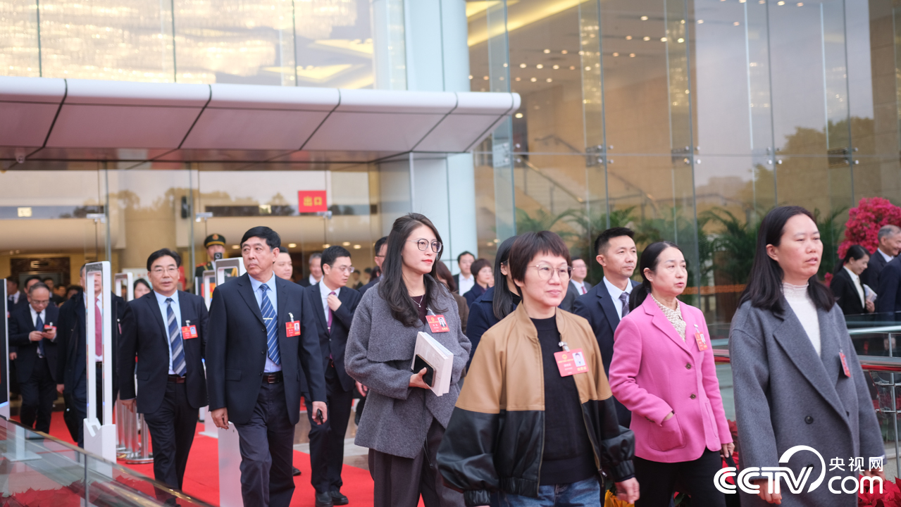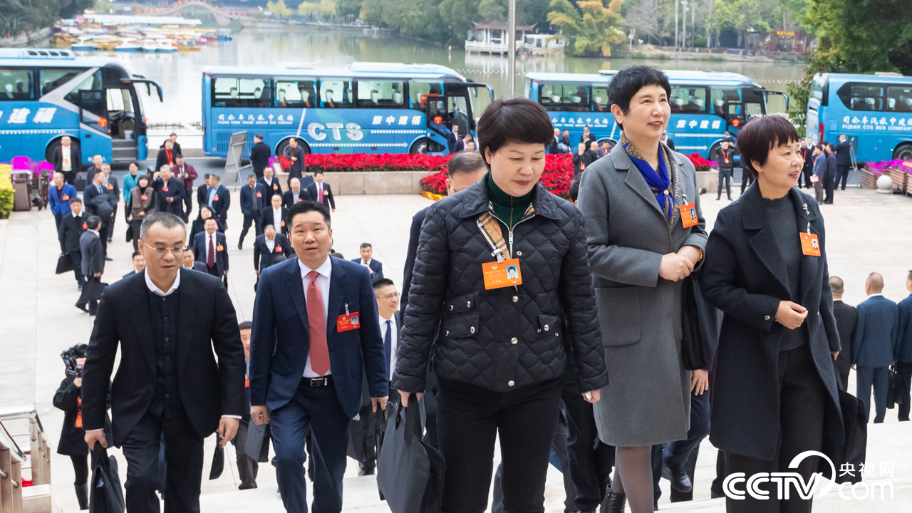 代表委员们步入会堂,参加福建省十四届人大四次会议开幕式。郑育红 摄