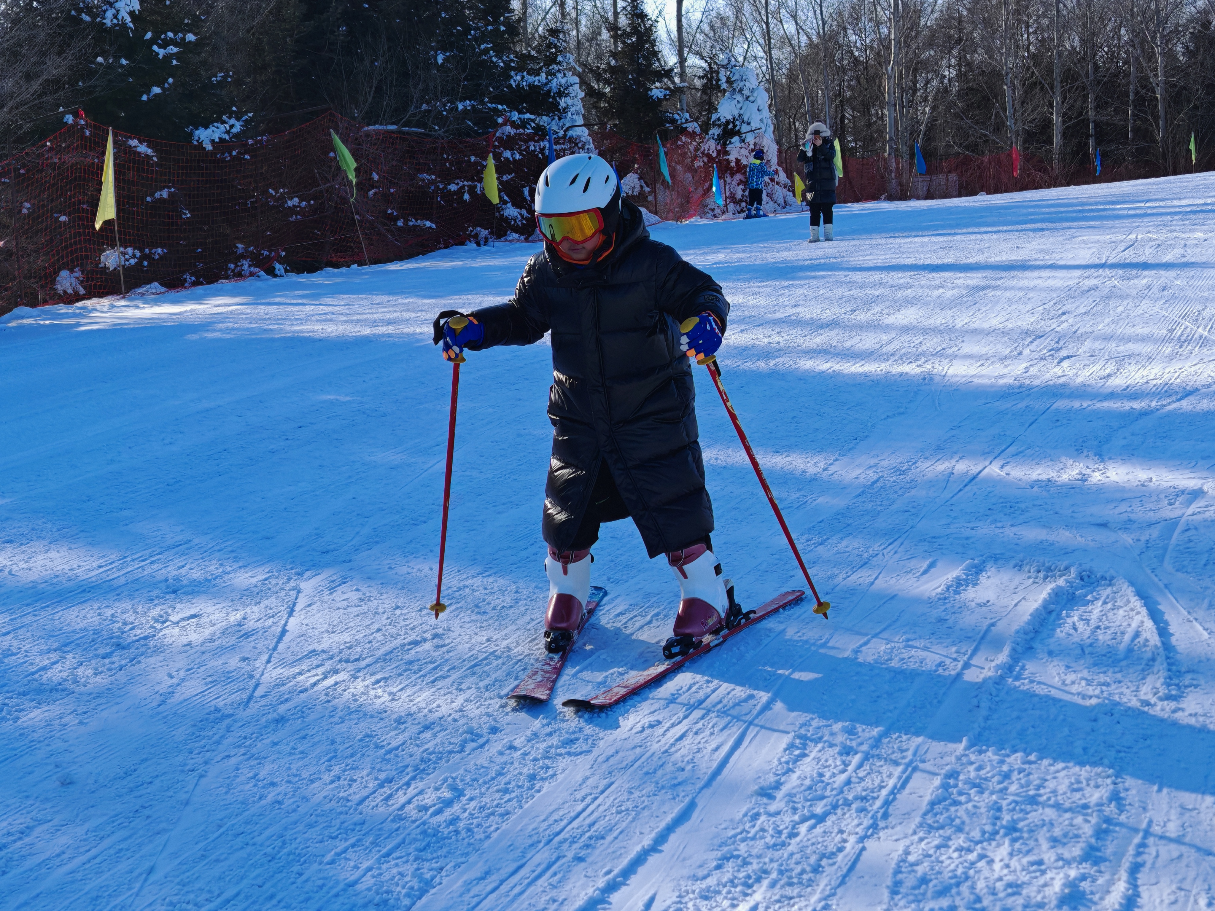 雪圈滑行更是让孩子们过足了瘾,在工作人员的助力下,顺着光滑的雪坡飞速滑下,风在耳边呼啸而过,让孩子们忍不住大声呐喊,声音穿透寒风。与此同时,B组学员的滑雪体验也在如火如荼地进行。16名滑雪教练现场执教,在教练的悉心指导下,孩子们从一开始小心翼翼地挪动脚步,到踏着雪板飞驰而下,这些第一次体验滑雪的小朋友们尽情享受驰骋雪道的快乐。“教练教得特别细,我现在已经能自己滑一小段了,感觉像在飞一样!”来自昆明的小学员王懿兴奋地说。