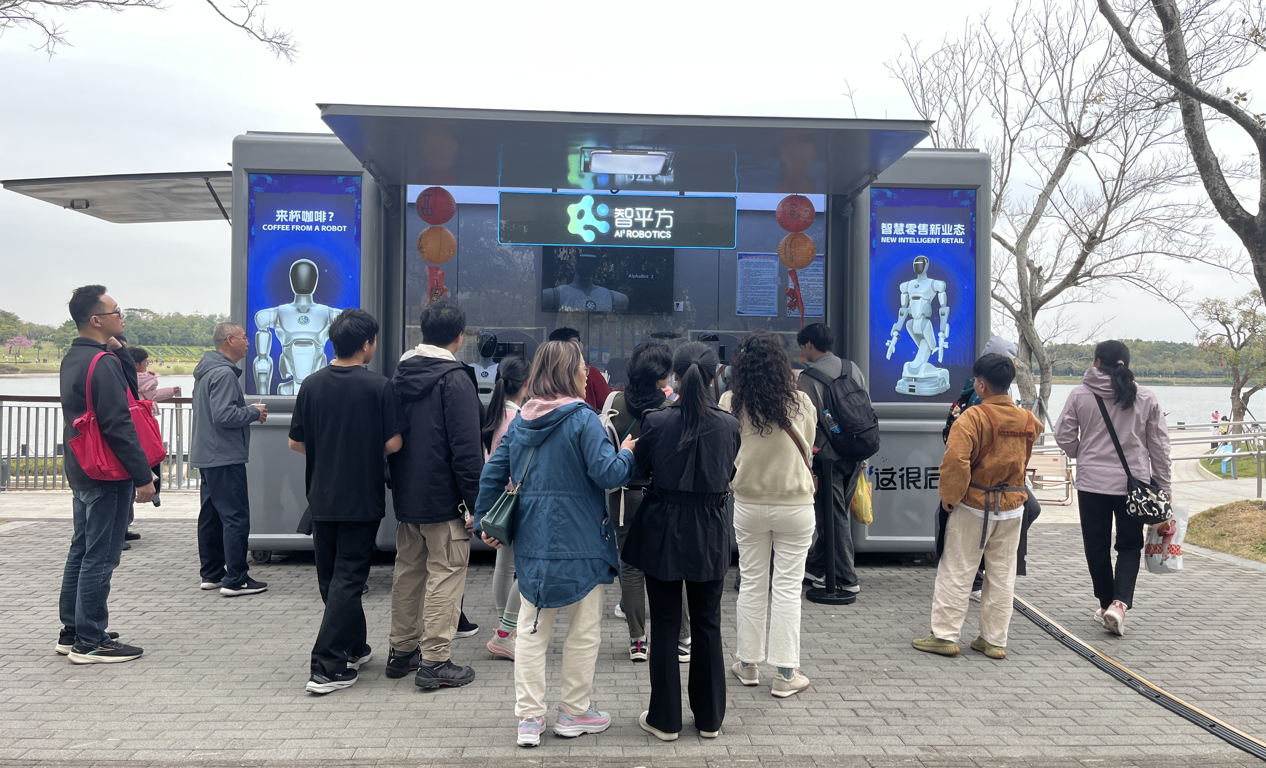 在深圳人才公园,“智魔方”成为一道引人注目的风景线。其搭载的自研机器人AlphaBot 2能自主操作商用设备,完成从取杯到拉花的全流程咖啡制作,同时可与顾客自然对话,还能与另一台机器人协作表演,将服务转化为可观看、可分享的科技体验。